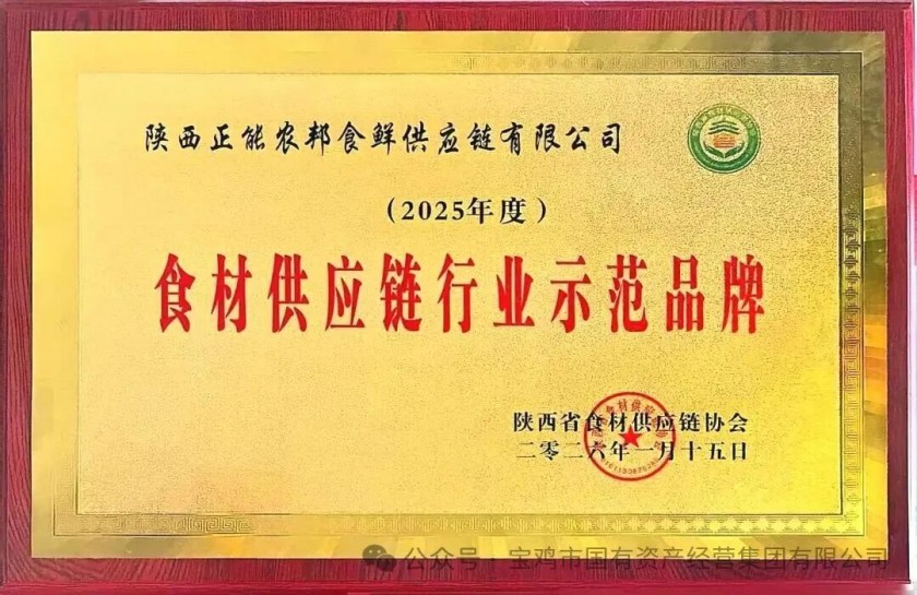 近日,由陕西省食材供应链协会主办,陕西省商务厅、陕西省市场监管局、省工商联指导、以“链接互通 协同共荣”为主题的“2026年陕西省食材供应链行业合作发展大会暨陕西省食材供应链协会一届三次理事会”在西安隆重举行。陕西正能农邦食鲜供应链有限公司荣获陕西省食材供应链协会授予的“2025年度食材供应链行业示范品牌”称号。